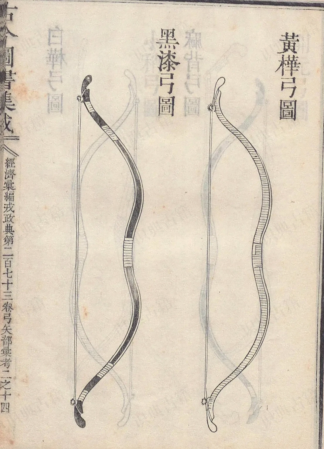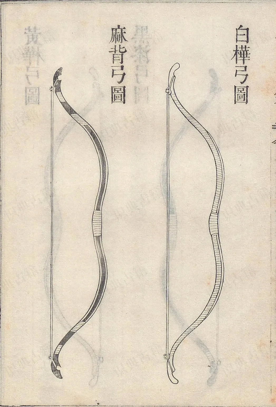 一、裹弓之法,或用黄桦,或用桃皮,或用朱红,皆不若黑生漆,免被水透。