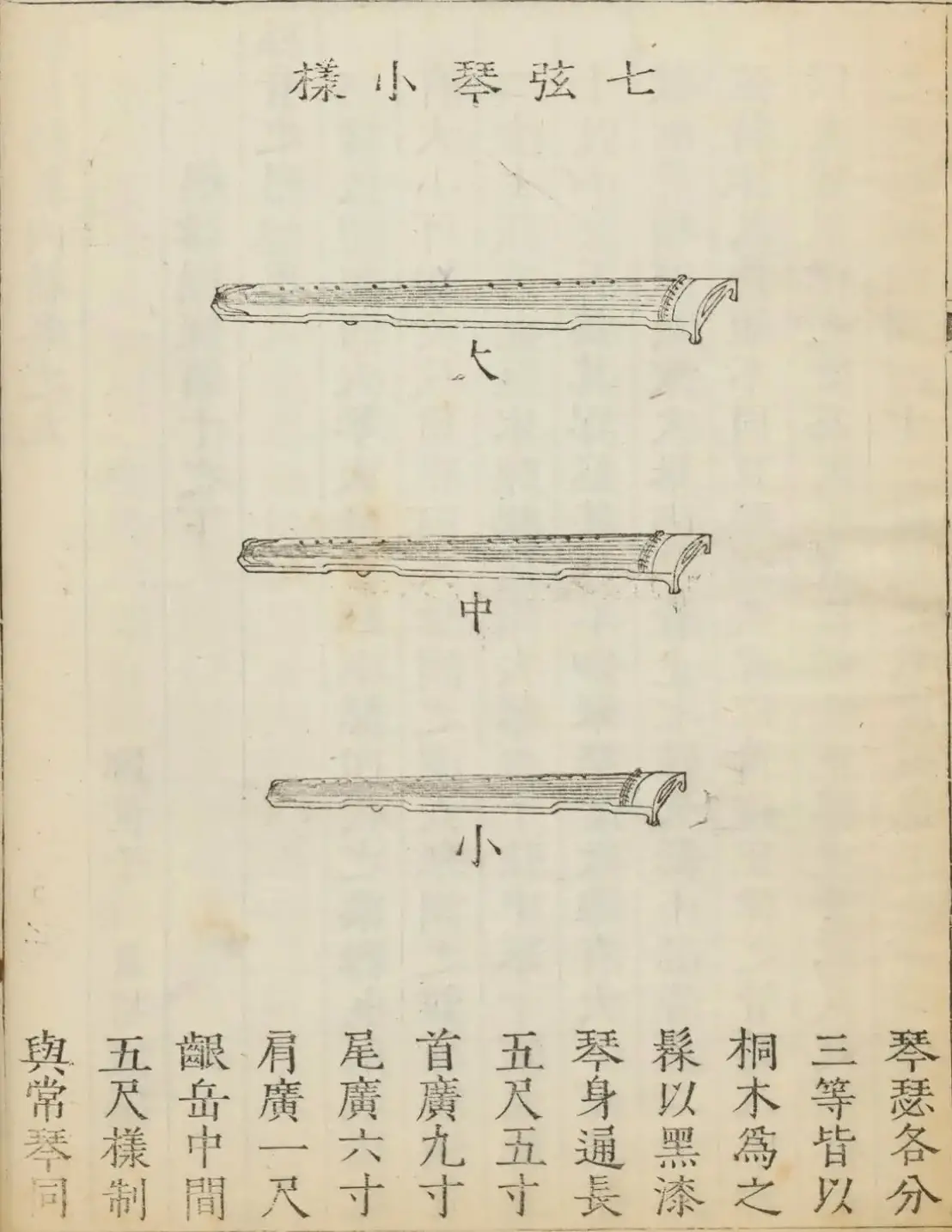 律吕精义内篇卷之九郑世子载堉谨撰乐器图样第十之下丝音之属总序谨按礼记曰大琴大瑟中琴小瑟四代之乐器也则琴瑟之有大小可知矣故尔雅曰大瑟谓之洒大琴谓之离郭璞谓皆二十七弦非也至宋陈旸遂谓大琴二十弦中琴十弦大瑟五十弦小瑟五弦其谬益甚殊不知琴瑟度数虽有大小而其弦数则无增减是故大琴小琴皆止七弦大瑟小瑟皆止二十五弦特律尺长短不同耳琴瑟大者以黄钟正律之管为尺中者以太蔟正律之管为尺小者以姑洗正律之管为尺是谓律度之尺周礼所谓以十二律为之数度是也