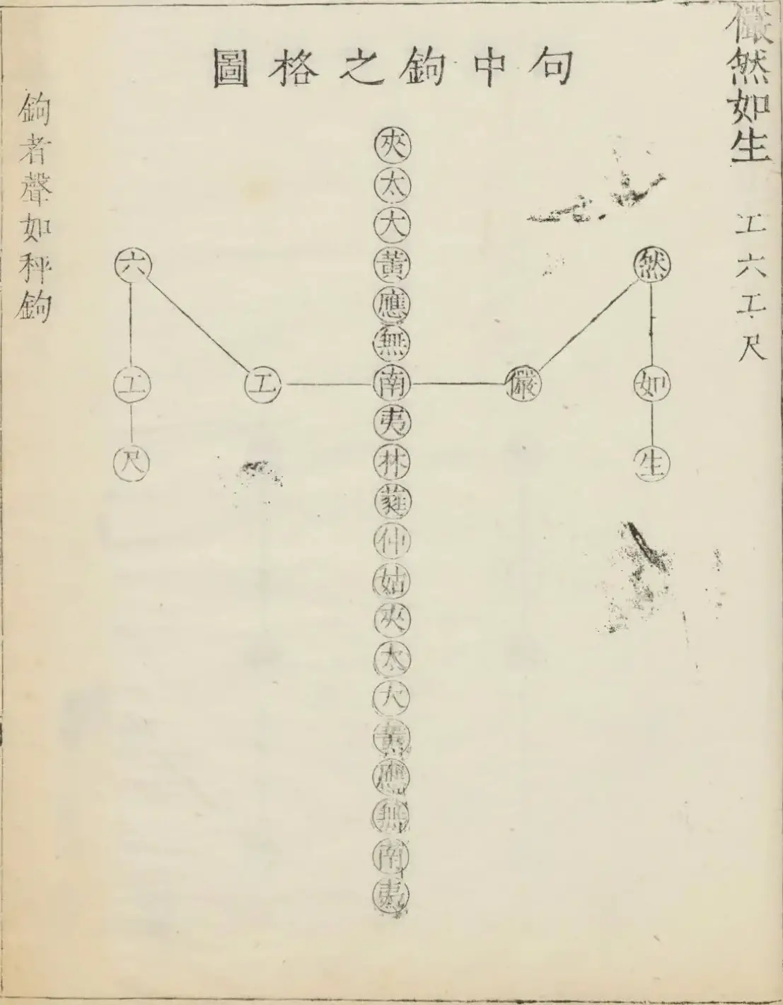勾字之上有小尺为林钟正律小尺之上有小工为南吕正律