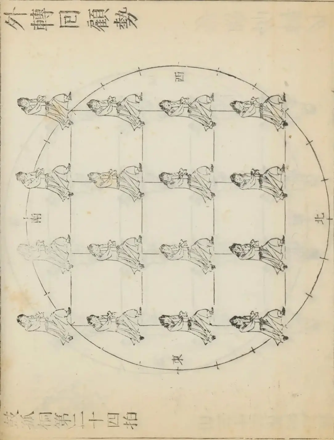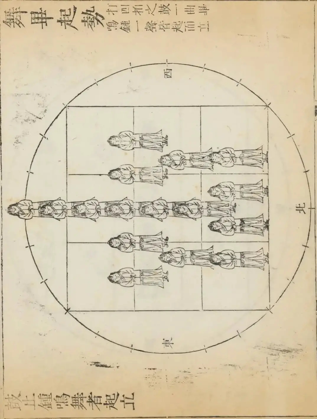 舞者就位播鼗三通钟鼓乐作吹鼓孤桐曲终乐止舞毕复位