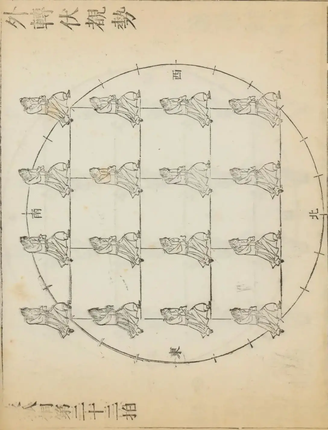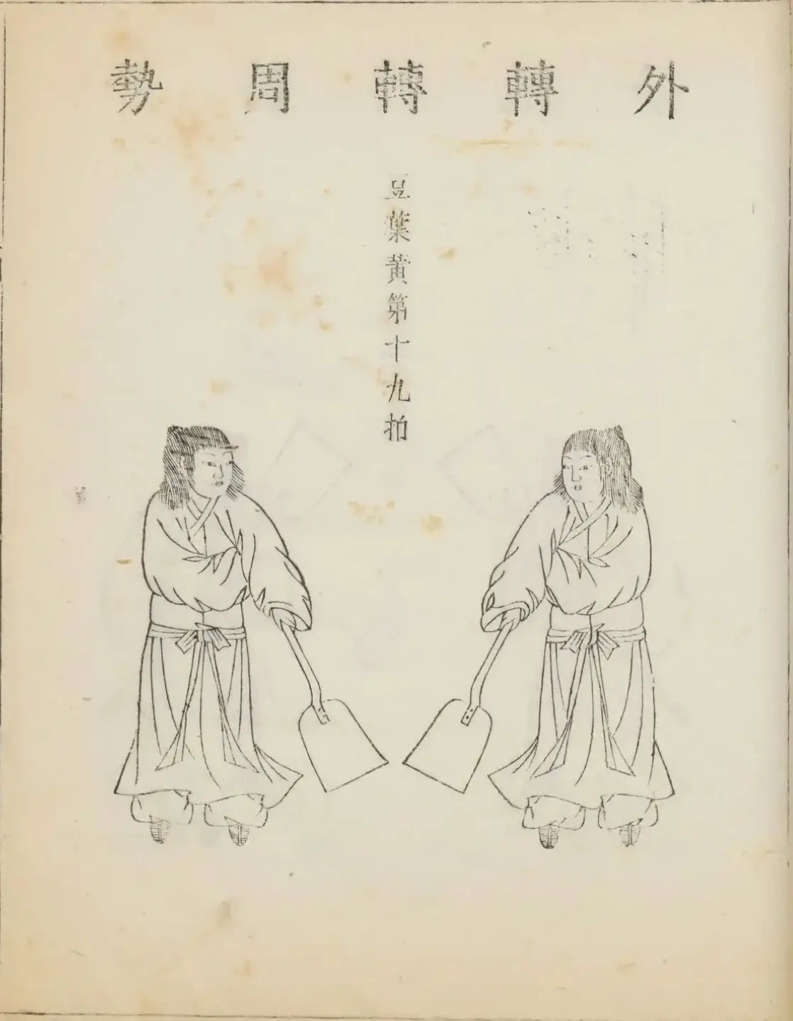 第三对用童男二人象教栽种手执锹舞四转共计三十二势
