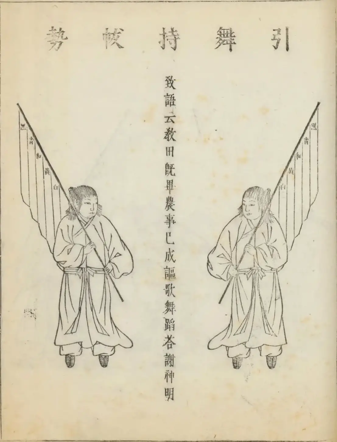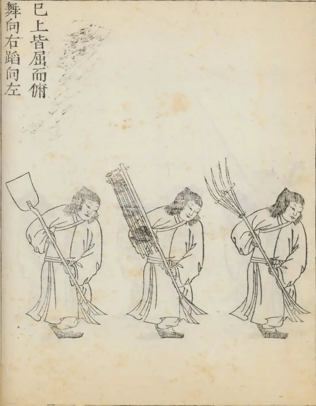 八对教簸扬手执木柳舞教田既毕农事已成讴歌舞蹈答谢