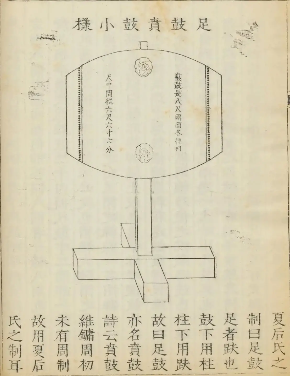 以瓦为其腔耳夏后氏之足鼓不过以鼓加其趺耳殷之楹鼓