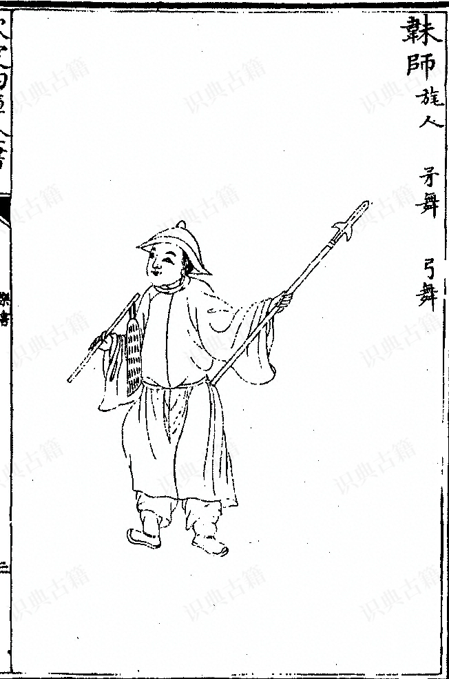 唐太平乐亦谓之五方师子舞。师子挚兽,出于西南夷天竺、师子等国,缀毛为之,各高丈余,人居其中,像其俯仰驯狎之容,二人持绳秉拂,为习弄之状,五师子各放其方色,百四十人歌太平乐,舞以足,持绳者服饰,作昆仑象
